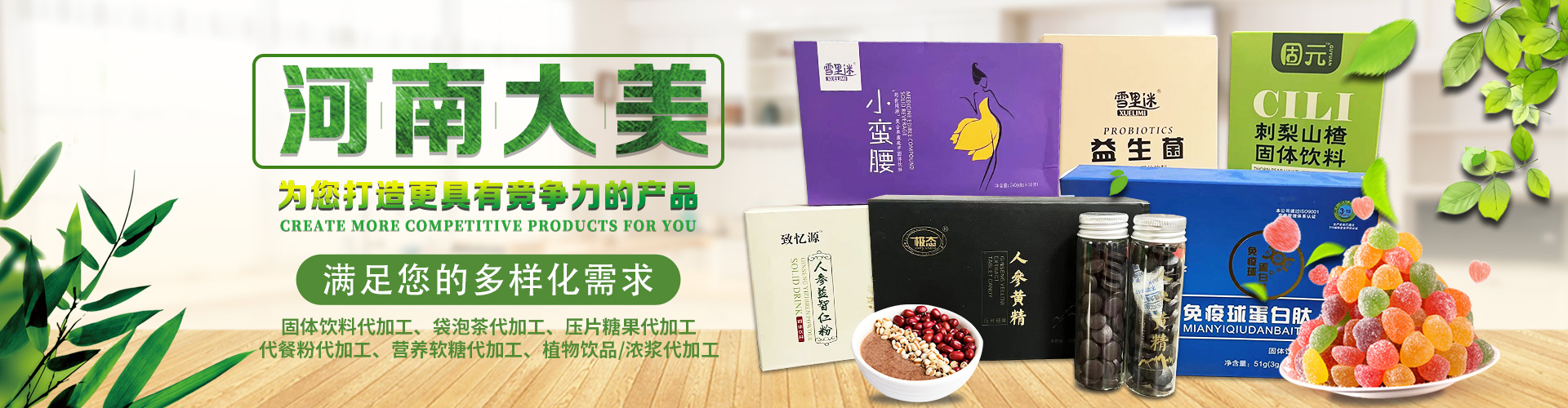 河南大美生物科技股份有限公司是從事顆粒劑、(固體飲料類),壓片糖果代加工等研發(fā)和銷售為一體的生產(chǎn)企業(yè)。公司依托自身的高科技研發(fā)隊(duì)伍和營(yíng)銷團(tuán)隊(duì),為國(guó)內(nèi)外客戶提供營(yíng)養(yǎng)食品各劑型和規(guī)格的研制、生產(chǎn)、配方設(shè)計(jì)、批文申報(bào)等服務(wù),并為客戶提供多種形式的流通渠道及產(chǎn)品銷售服務(wù)工作。 您的要求就是我們的使命!我們的宗旨是與客戶“合作共贏,攜手向前”,共同創(chuàng)造事業(yè)新的輝煌!